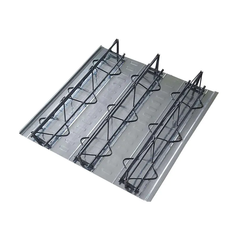 Deck Trad Steel-Bars ຖືກສ້າງຕັ້ງຂຶ້ນໂດຍການເຊື່ອມຕໍ່ Truss Steel Steel ແລະດ້ານລຸ່ມຜ່ານການຕ້ານທານຈຸດ. Trust Trars ເຫຼັກແມ່ນເຮັດດ້ວຍແຖບເຫຼັກ, ເຊິ່ງຖືກນໍາໃຊ້ເປັນ chord ເທິງ, ລຸ່ມແລະແຖບເວັບອີງຕາມຕໍາແຫນ່ງທີ່ແຕກຕ່າງກັນ. ແຜ່ນດ້ານລຸ່ມສາມາດເຮັດໄດ້ດ້ວຍແຜ່ນເຫຼັກທີ່ເຮັດດ້ວຍເຫລັກທີ່ເຮັດດ້ວຍເຫລັກຫລືແຜ່ນເຫຼັກເຢັນ.